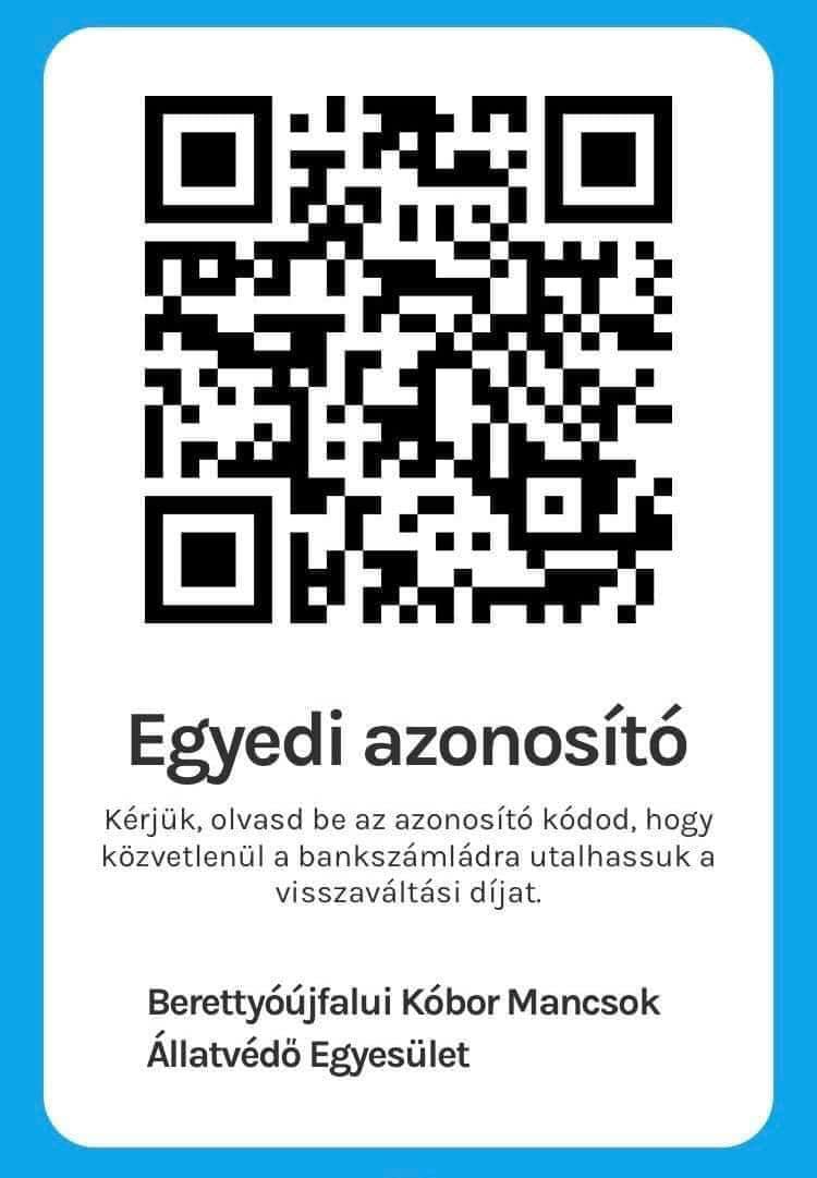 A REPONTOS visszaváltások alkalmával lehetőségetek van menhelyünket támogatni. Amennyiben bankszámlára kéritek a visszaváltott üvegek árát, és a mi QR azonosítónkat olvassátok be a visszaváltás során, a menhelyünk számlájára kerül jóváírásra az adott összeg. Köszönjük, ha támogattok minket!